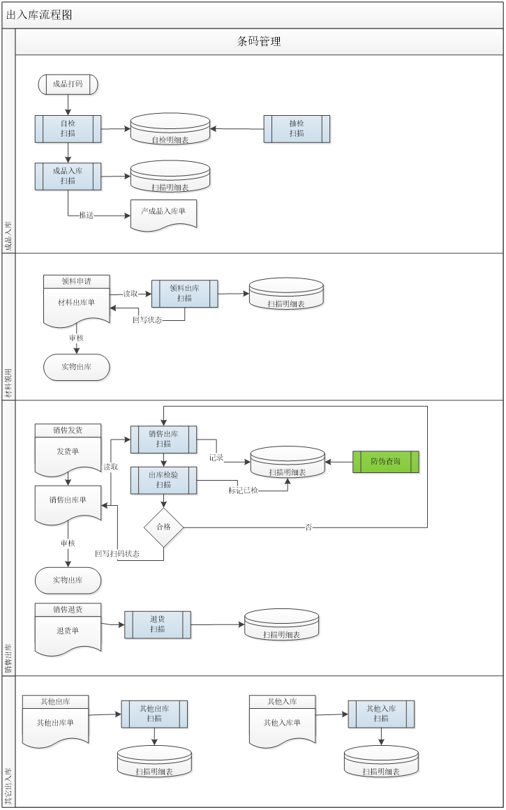 公司條碼系統(tǒng)分2個(gè)部分,第一部分:產(chǎn)成品中的超級(jí)電容器自檢、抽檢、成品入庫(kù)、材料領(lǐng)用、銷(xiāo)售發(fā)貨出庫(kù)、其他出入庫(kù)、退貨,需要使用掃描設(shè)備讀取二維碼,可根據(jù)產(chǎn)成品的特性(容量、內(nèi)阻、自放電)、批次號(hào)查詢(xún)現(xiàn)存量,可在公司網(wǎng)站中防偽查詢(xún)。