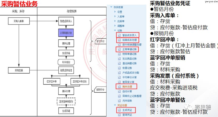 老師將這兩種業務畫了一個清晰的流程圖,并將每個節點對應單據生成的憑證列舉出來,給大家梳理一遍。最后還將采購結算余額表與暫估材料商品余額表對賬,材料采購科目對賬的詳細思路與步驟進行總結,下次大家再遇到這個問題就不會束手無策啦。